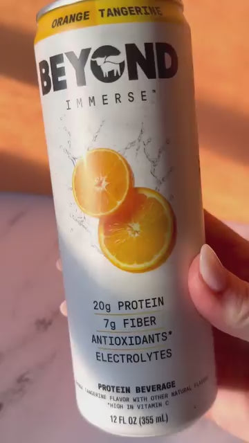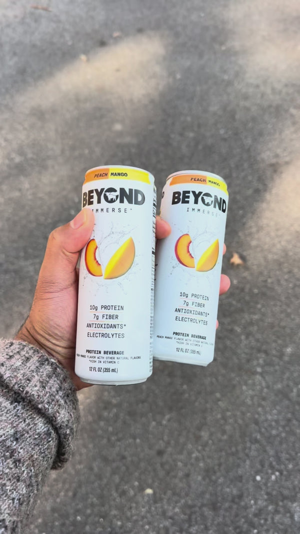 Tropical, smooth & sweet - like sunshine in a can. Beyond Immerse Peach Mango delivers 10g clean plant protein with 7g fiber, antioxidants & electrolytes. Designed to replenish the body with every refreshing sip.